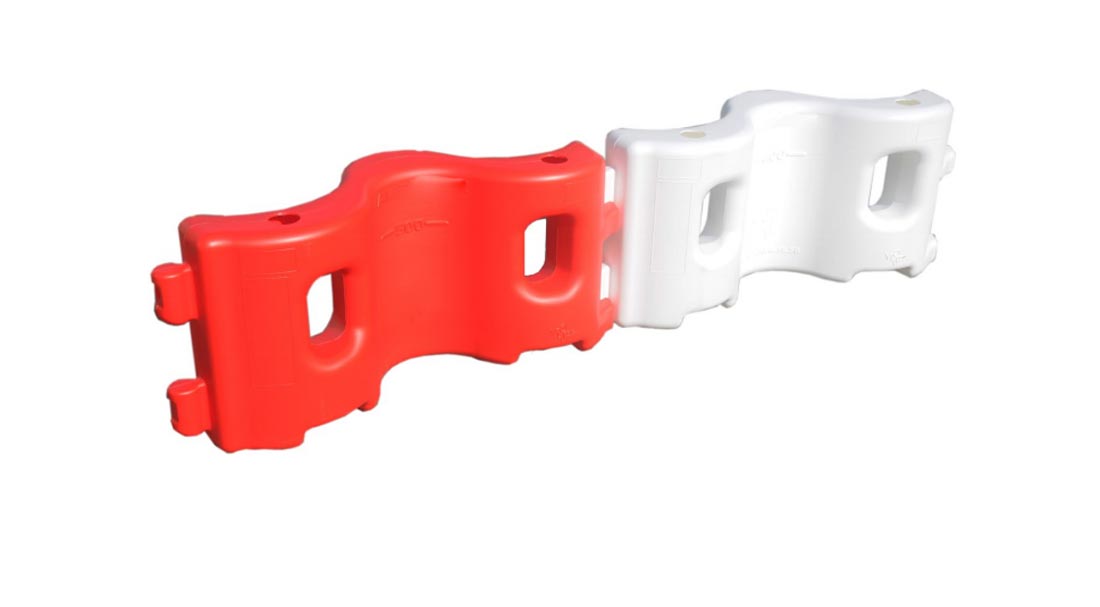 Séparateur de voie forme vague hauteur 500 mm - Lestage à l'eau (50 litres) - Largeur 500 x 1120 x 500 mm - Eco-fabrication en PEHD et matière minérale - Rapidité de mise en œuvre pour une stabilité maximale
