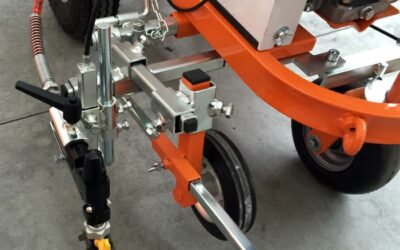 La roue avant est pivotante pour marquer des rayons étroits et elle peut être bloquée depuis le guidon pour les marquages droits.